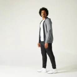 Chaqueta Fitness Con Cremallera Y Capucha Hombre Domyos 100 Gris