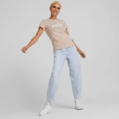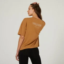 Domyos Camiseta Fitness 520 Loose Mujer Avellana Manga Corta Mayoritariamente Algodón