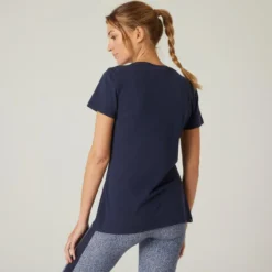 Domyos Camiseta Fitness Manga Corta Cuello Redondo Algod贸n Extensible Mujer Azul Marino