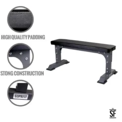 Compra en Decathlon Banco de pesas Suprfit Blitgard Banco de pesas Suprfit Blitgard – banco de entrenamiento plano con cómodo acolchado, construcción estable de acero, cubierta de imitación de cuero de fácil cuidado, carga máxima: 300 kg