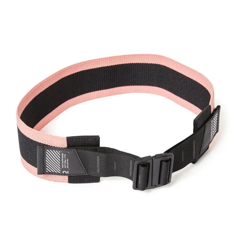 Compra en Decathlon Banda elástica glúteo glute band ajustable hasta 14kg Corength Banda elástica para glúteos diseñada para la práctica de la musculación, específicamente para la parte inferior del cuerpo.