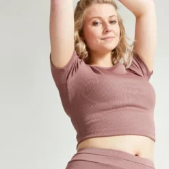 Compra en Decathlon Camiseta fitness crop top manga corta Mujer Domyos El crop top es el corte estrella de las camisetas deportivas, dise帽ado en punto de canal茅 extensible y transpirable para todas tus actividades deportivas.