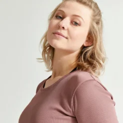 Camiseta Fitness Crop Top Manga Corta Mujer Domyos Marr贸n