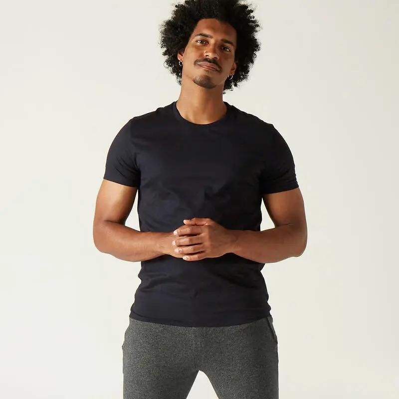 Camiseta Fitness Manga Corta 100% Algod贸n Hombre Domyos Negro
