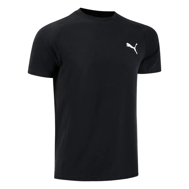 Camiseta Fitness Puma Hombre Negro Manga Corta Algod贸n