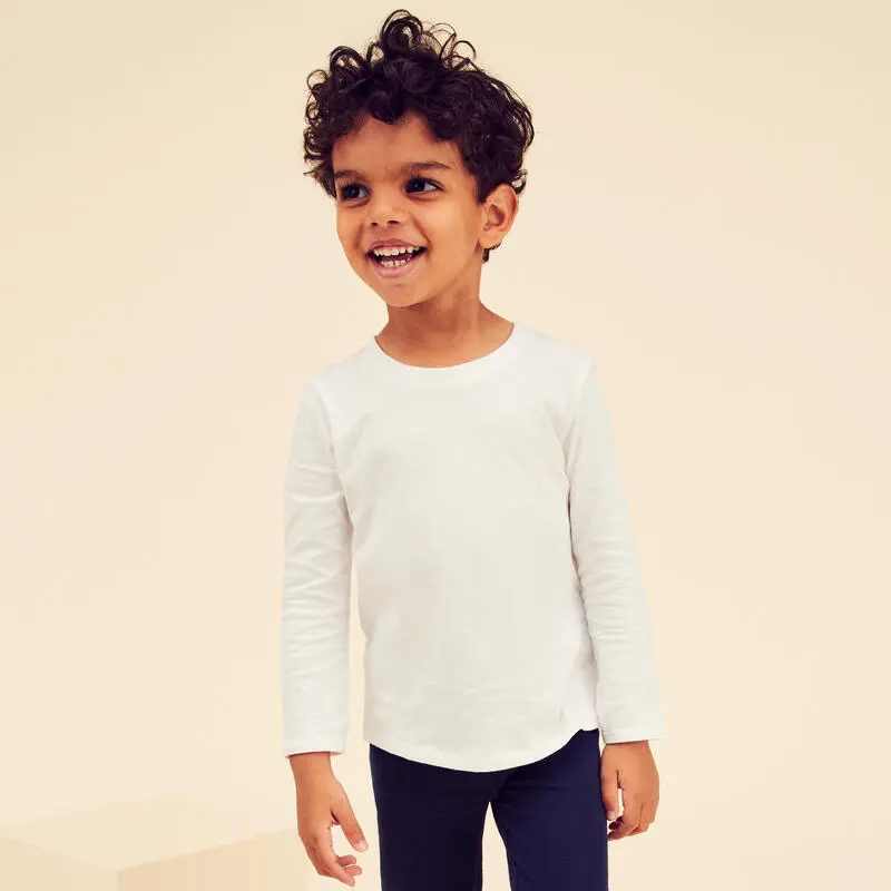 Compra en Decathlon Camiseta gimnasia deportiva manga larga 100% algodón Bebés Domyos 100 ¿Y si una camiseta se convirtiese en tu aliada para ahorrar tiempo cuando vistes a tu hijo(a)? ¡Fácil de poner y además muy suave!