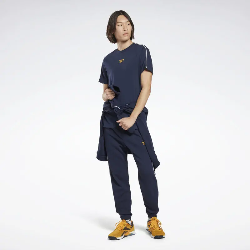 Camiseta Manga Corta Algod贸n Hombre Reebok Workout Ready Piping Azul