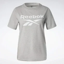 Compra en Decathlon Camiseta Manga Corta Mujer Reebok Identity Gris Esta camiseta para mujer, parte de la colección REECYCLED, está confeccionada en tejido suave de punto tan cómodo que es ideal para llevarla todo el día y luce un logo Vector en la parte delantera.