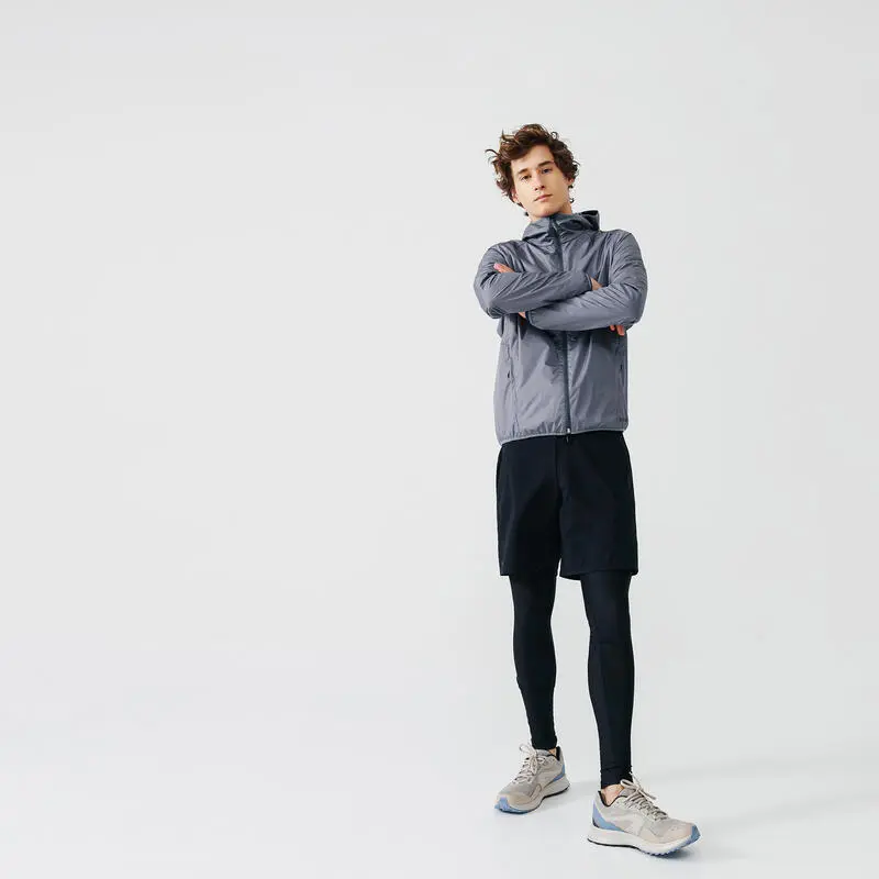 Chaqueta Cortavientos Running Hombre Perlante Kalenji Run Rain Gris