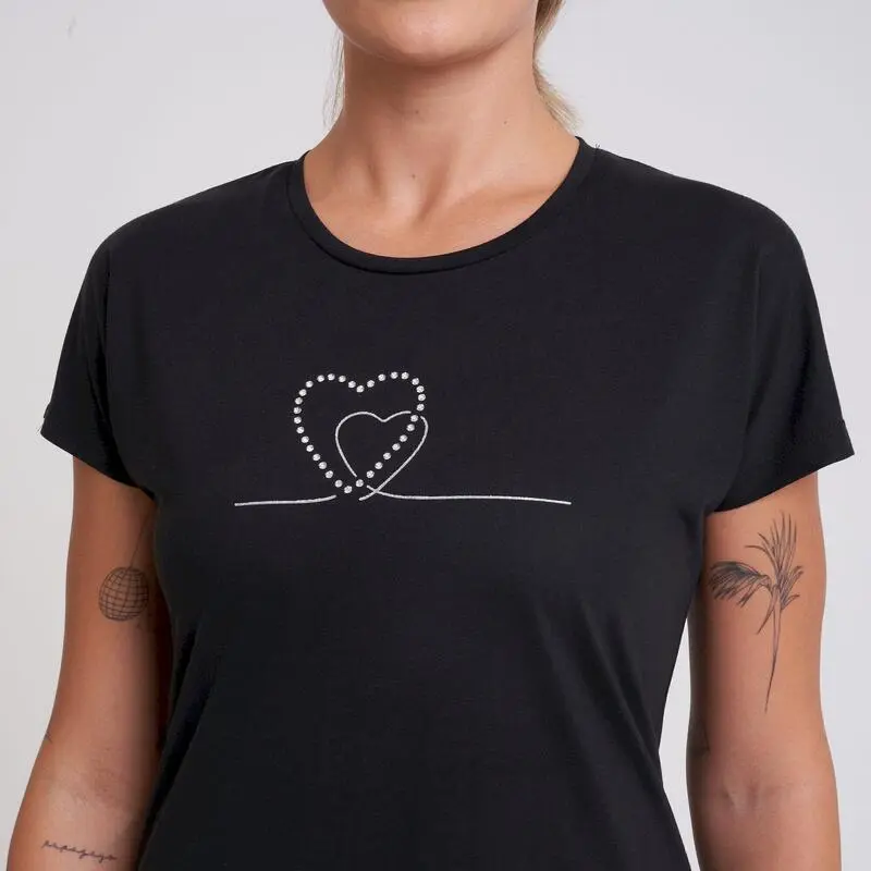Compra en Decathlon Camiseta Crystallize Coraz贸n para Mujer Negro Alta calidad De las mujeres pilates producto, Poli茅ster,Lyocell material, 70% Poli茅ster, 30% Lyocell.