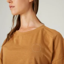 Domyos Camiseta Fitness 520 Loose Mujer Avellana Manga Corta Mayoritariamente Algod贸n