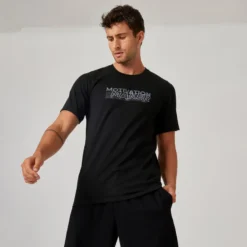 Domyos Camiseta Fitness Manga Corta Algod贸n Extensible Slim Hombre Negro