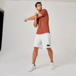 Domyos Camiseta Fitness Manga Corta Algod贸n Extensible Slim Hombre Sepia