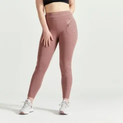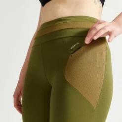 Domyos Leggings Fitness Cardio Mujer Caqui Talle Alto Cord贸n De Ajuste