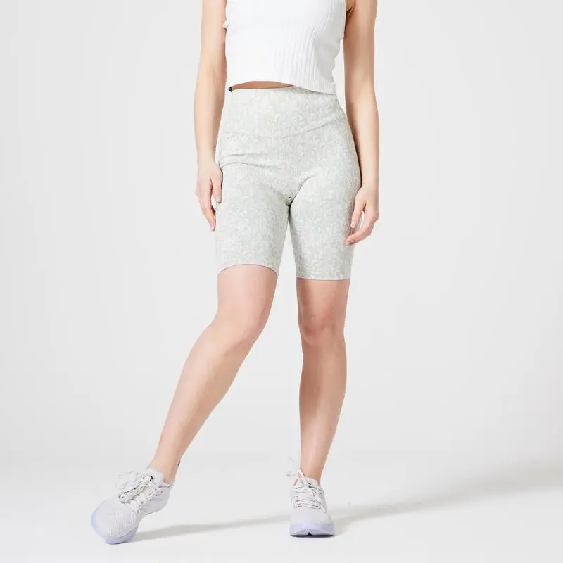 Domyos Mallas Ciclistas Fitness 520 Mujer Beis Estampado - Imagen 2