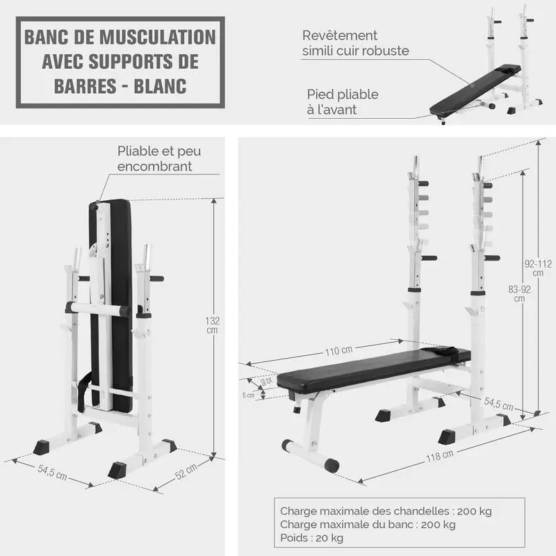 Compra en Decathlon Banco Musculación con Kit Pesas 100 Kg Gorilla Sports Negro Banco plegable con rack con set de pesas de 100 Kg incluido. Ideal para entrenamientos de todo el cuerpo como tríceps, espalda, hombros, piernas, pecho y tronco.