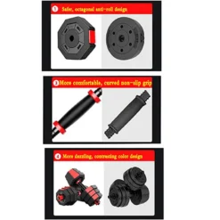 Compra en Decathlon Juego de mancuernas 2 en 1 Octogonal Fitness Tech de 20kg a 50kg Este juego de mancuernas está diseñado con forma octogonal antivuelco para una mayor firmeza y estabilidad. Lo discos son intercambiables y ofrece un conector para formar una barra recta.