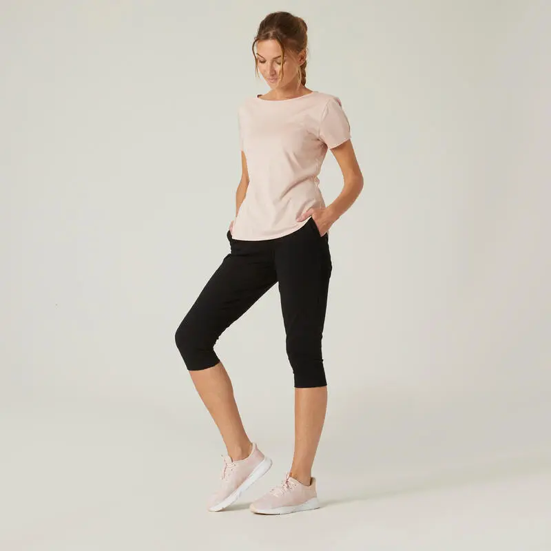 Compra en Decathlon Leggings mallas fitness corsario corte ajustado algod贸n Mujer Domyos Fit+ negro Mallas corsario extensibles que aportan suavidad gracias a su 8% de elast谩n y el mayoritario de algod贸n para una libertad de movimientos.