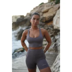 Leggings Mallas Fitness Cortos Sostenible Poliéster Mujer Fitplanet Shark Gris