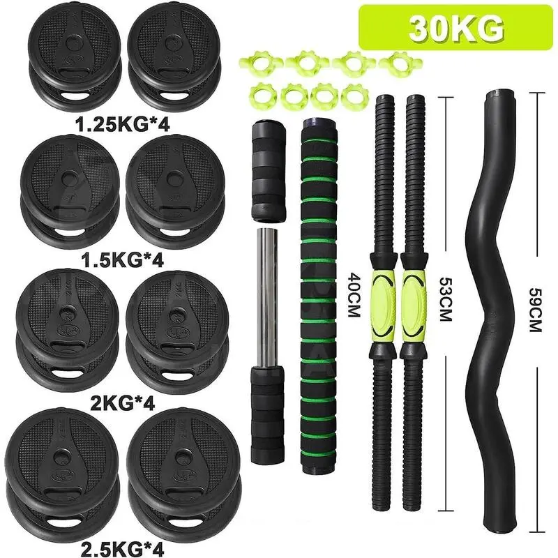 Compra en Decathlon Juego Kit 30 kg de Mancuernas 4 en 1 MultiFit Juego kit 30 kg de mancuernas 4 en 1 MultiFit ideal para tus entrenamientos de fuerza