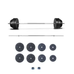 Compra en Decathlon Kit de Pesas de 60KG con Discos, Barra y topes Fitness Musculación Kit de Pesas de 60KG ideal para tus entrenamientos de fuerza para usarlo tanto en casa como en el gimnasio