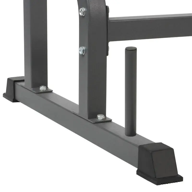 Compra en Decathlon Soporte Rack Levantamiento de Pesas con Soporte de Discos Alta carga Negro Soporte rack de pesas ajustable y con carga máxima de 150 kg ideal para realizar ejercicios de sentadilla, press de banca o levantamientos entre otros ejercicios