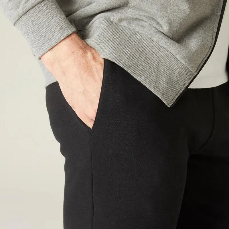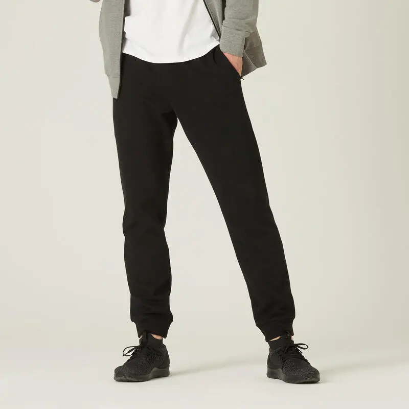 Compra en Decathlon Pantal贸n ch谩ndal fitness regular Hombre Domyos 100 Un pantal贸n sencillo y c谩lido, para llevar durante el fitness y en el d铆a a d铆a. Tiene bolsillos laterales. Su material esta compuesto de algod贸n y poli茅ster.