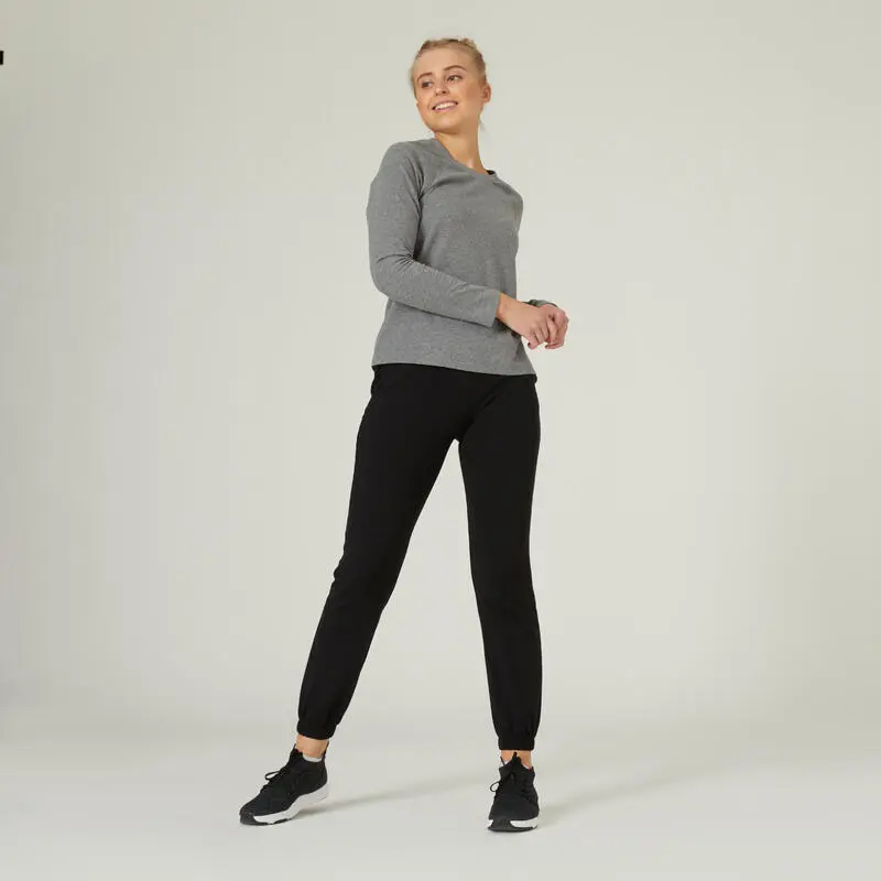 Compra en Decathlon Pantal贸n jogger fitness recto algod贸n Mujer Domyos negro Porque el pantal贸n negro de corte recto es EL b谩sico de cualquier guardarropa, nuestros estilistas lo han dise帽ado para que vayas a la moda en el deporte y en la vida cotidiana.