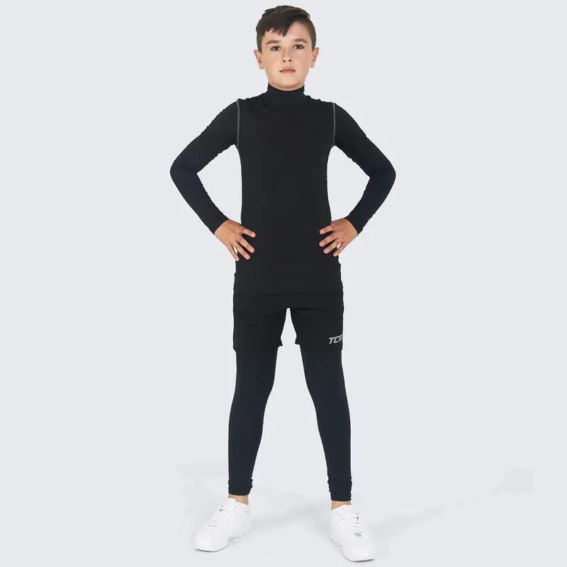 POWERLAYER Camiseta De Compresión Manga Larga Con Cuello Alto Para Niños