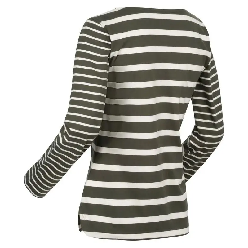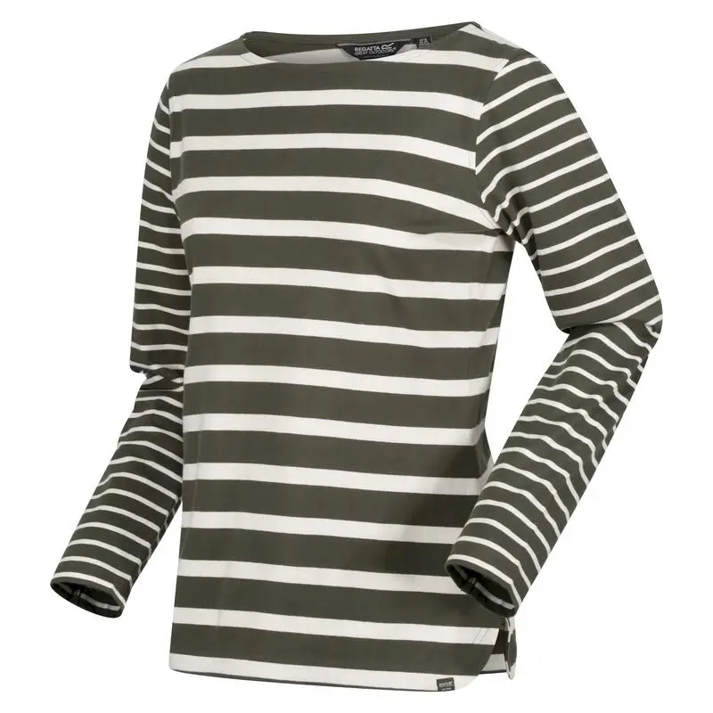 Regatta Camiseta Farida De Rayas De Manga Larga Para Mujer Caqui Oscuro, Vainilla Claro