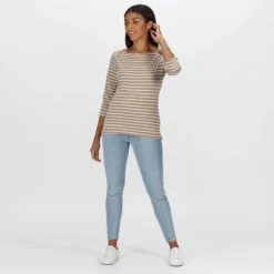 Regatta Camiseta Polina De Rayas De Manga Larga Para Mujer Nuez Moscada