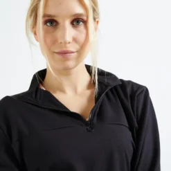 Sudadera Fitness Media Cremallera Corta Mujer Domyos 120 Negro