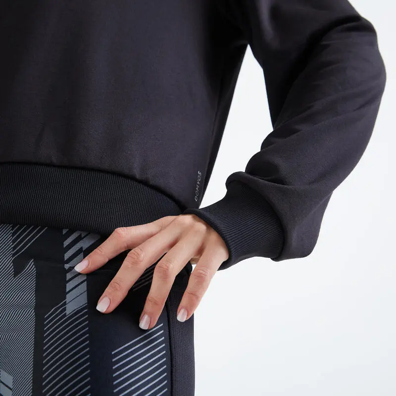 Compra en Decathlon Sudadera Fitness media cremallera corta Mujer Domyos 120 Una sudadera sencilla y cómoda, que se lleva a diario y es ideal para todos los tipos de prácticas deportivas.