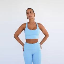 Compra en Decathlon Top deportivo fitness Sostenible poliéster Mujer Fitplanet Dolphin azul claro Top deportivo sostenible de sujeción alta con copas extraíbles. Tejido muy suave y transpirable para una comodidad máxima. Tejido de secado rápido y permeable al vapor de agua.