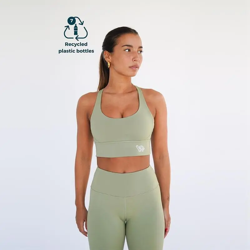 Compra en Decathlon Top deportivo fitness Sostenible poliéster Mujer Fitplanet Seaturtle verde Top deportivo sostenible de sujeción alta con copas extraíbles. Tejido muy suave y transpirable para una comodidad máxima. Tejido de secado rápido y permeable al vapor de agua.